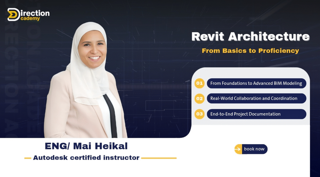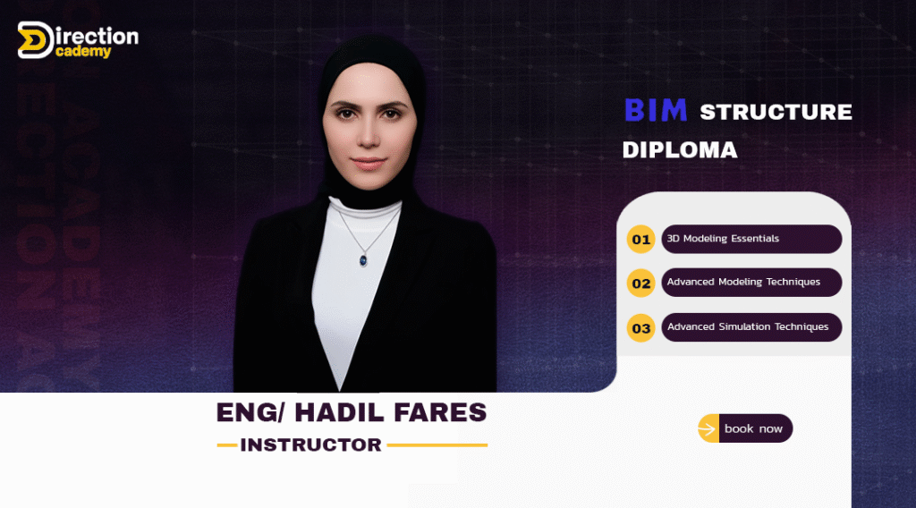 Direction Academy’s specialized course offers a distinctive 40-hour online, interactive learning journey at an exclusive rate. Enrollees will be awarded a certification from the academy upon completion. Eng. Hadil Fares, an acclaimed BIM specialist, is renowned for her instructional roles in BIM courses under the Engineering Syndicate’s auspices.